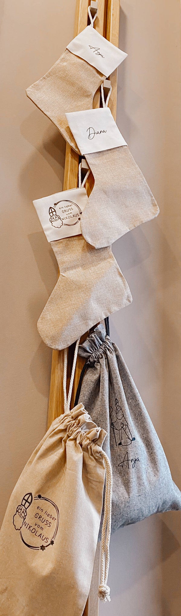 Diese umweltfreundlichen Säckchen sind ideal, um kleine Geschenke oder Süßigkeiten für den Nikolaustag stilvoll und nachhaltig zu verpacken. Wähle zwischen einem natürlichem Naturton oder einem modernen Grau und gestalte deinen Nikolaustag ganz individuell.